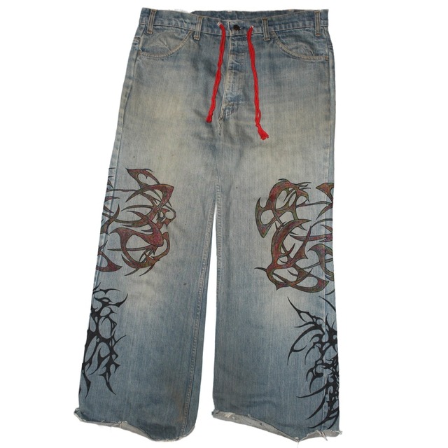 size: 総丈108cm/股下82cm/股上26cm/渡幅20cm 裾幅22cm/ウエスト74cm ※測定に関して平置き採寸の為、多少の誤差が生じる場合がありますので予めご了承下さい。 ※商品問い合わせはInstagramからDMにてお願い致します。 ※USEDの商品に関して御理解の上お求め下さい。